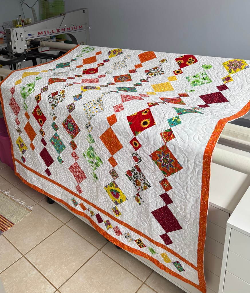 We chose the quilting design New Wave, with its soft flowing curves it really accentuates the movement in her quilt!
