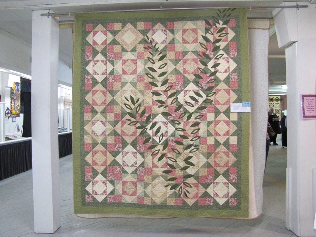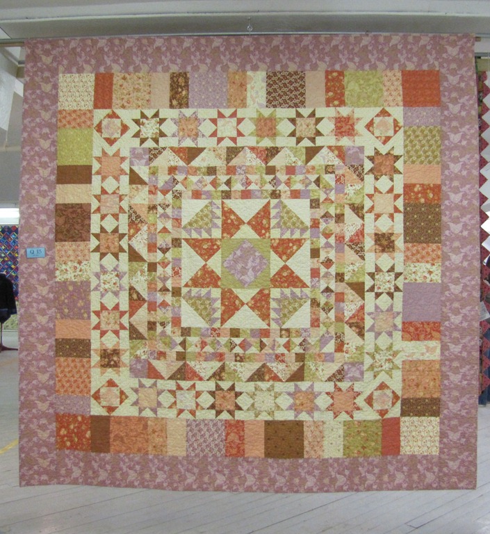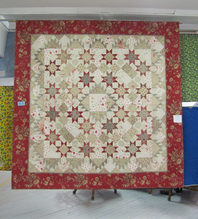 Elizabeth will be given to her owner Shauna after this show. This quilt is a wedding gift that my daughter Sarah asked me to make for her very dear and close friend. Shauna has been patiently waiting for her quilt. They were married last summer. Elizabeth is another Carrie Nelson pattern (Miss Rosie’s Quilt Co) and the fabric is Rouenneries by French General.