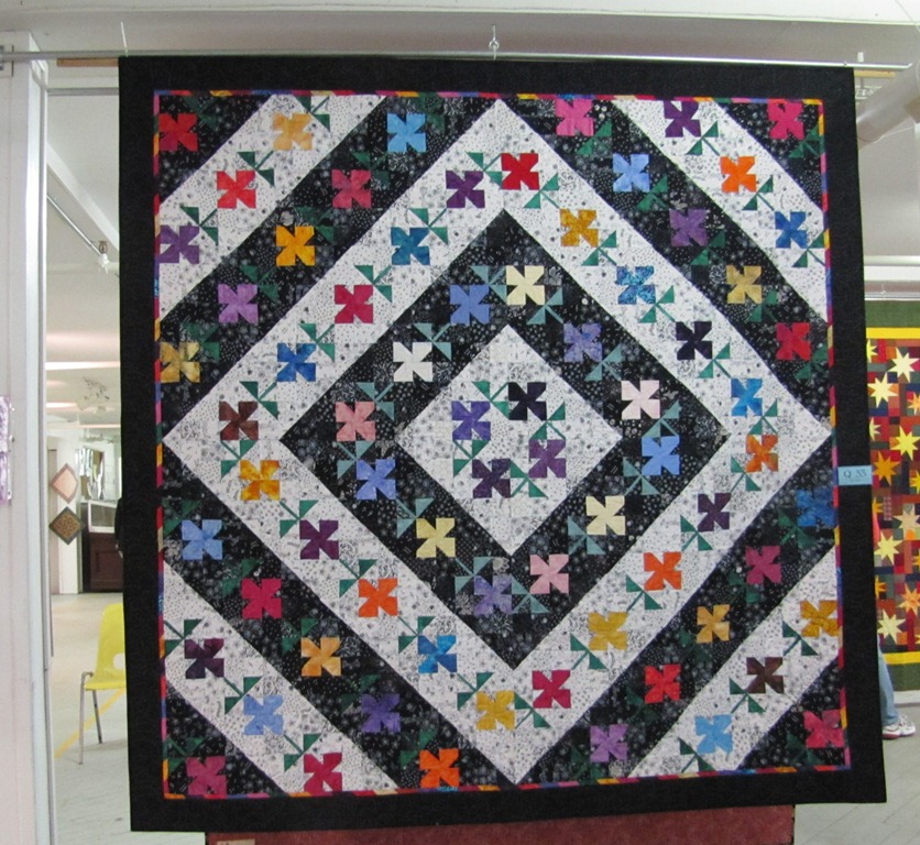 Alva made this quilt for her granddaughter Kara.  The pattern is called Wind Blown Blossoms and was found in Quilt Maker Magazine Spring 2010, it is a total deviation from the quilt in the Magazine but these colours are so Alva. Alva chose a Pantograph called Vortex for this one which really complements it.