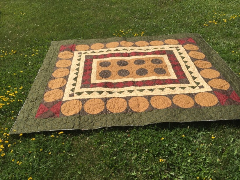 Last summer Alva completed this quilt that she had purchased as a kit. The colours were an unusual choice as she almost always uses very clear colour, low volume or muddy colour. I love the circles and had a new pantograph that I had been waiting to use.