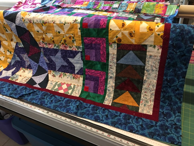 I recently had the privilege to quilt a round robin style of quilt for a friend Bobbie who was in a group of quilters that were a very big part of quilt Guild for many years and helped to bring Quilt Canada to Thunder Bay.