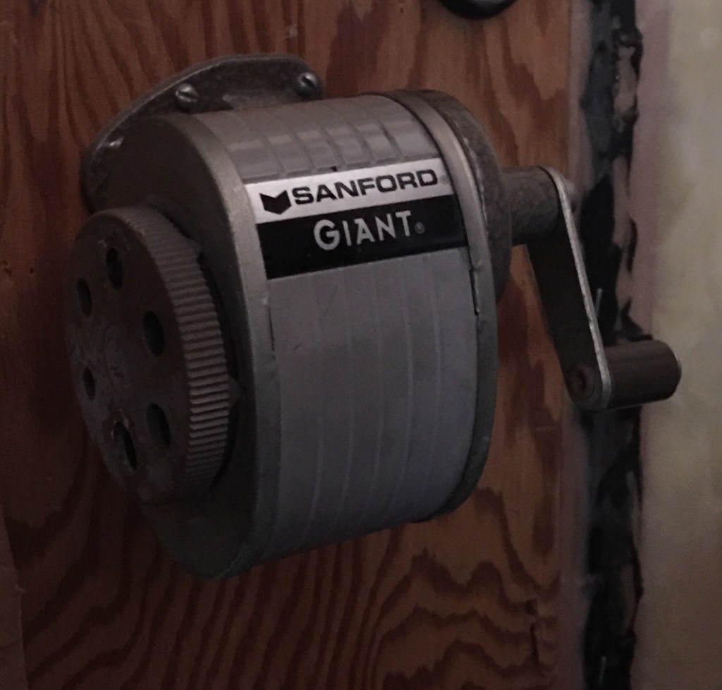 He emerged from the office and asked if we had a pencil sharpener so I took him down to our utility room where we have ours… I asked him if he had one like it in his classroom at school. He said no, so I asked if he knew how to use it…Yes Grandma, I saw one on a YouTube about the Olden Days!