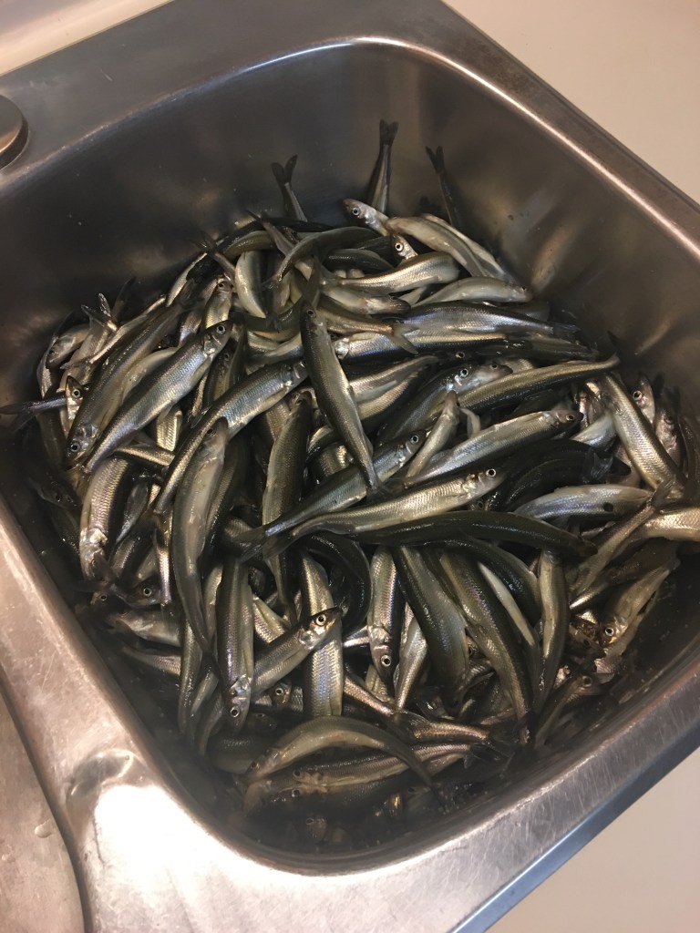 Later that night He and his Dad met up with Pappa and did some smelt fishing… I wasn’t there so no picture other than the result.