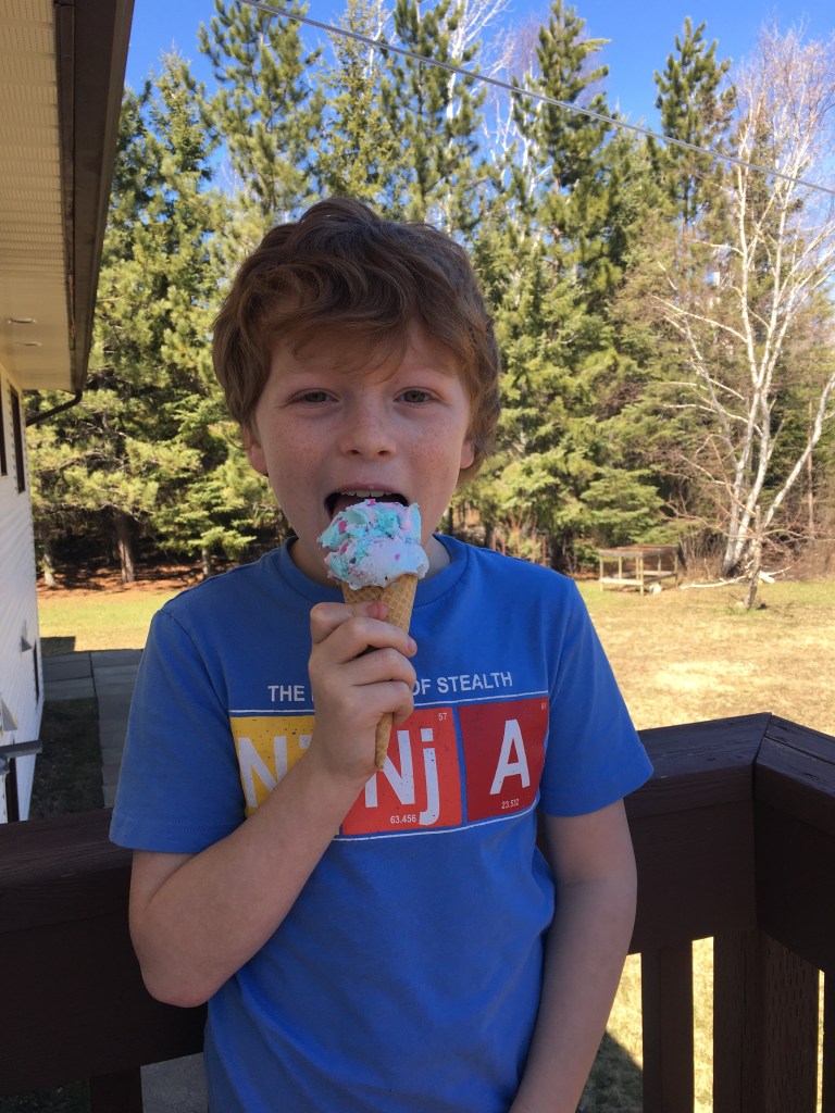 After a very busy week, he finished it off with a bubblegum ice cream cone.