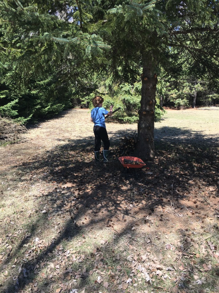We were both thankful for art on Friday, early in the week the kids were told that they would need items from nature. Liam bought into this project right away! He began collection items while we worked on readying the flower beds for summer.
