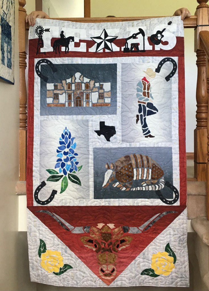 These wall hangings were super fun to quilt for Jennett, the appliqué pieces were so intricate and interesting. She did tell me after I quilted them that they were made from kits and that the appliqué was all precut.