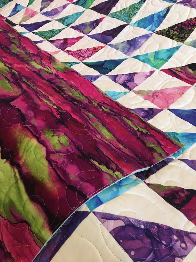 Joan made this quilt as per her Granddaughters request. I loved the bubbles on many of the fabrics which led me to choosing the pantograph Bubbles! Such a beautiful quilt for a young teen.