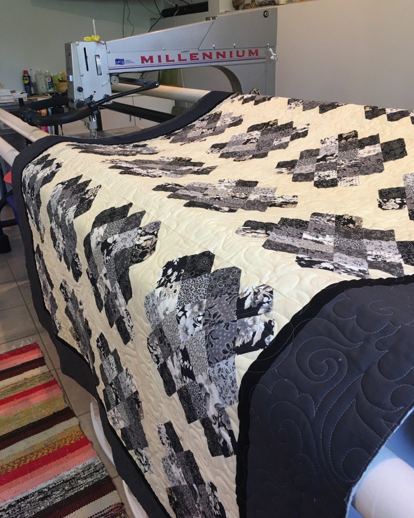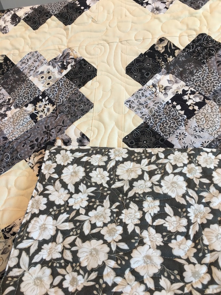 I don’t know whether I have the name correct or not, however Joan’s quilt reminded me of granny squares. Her colour/fabric choices made for a much more elegant look.