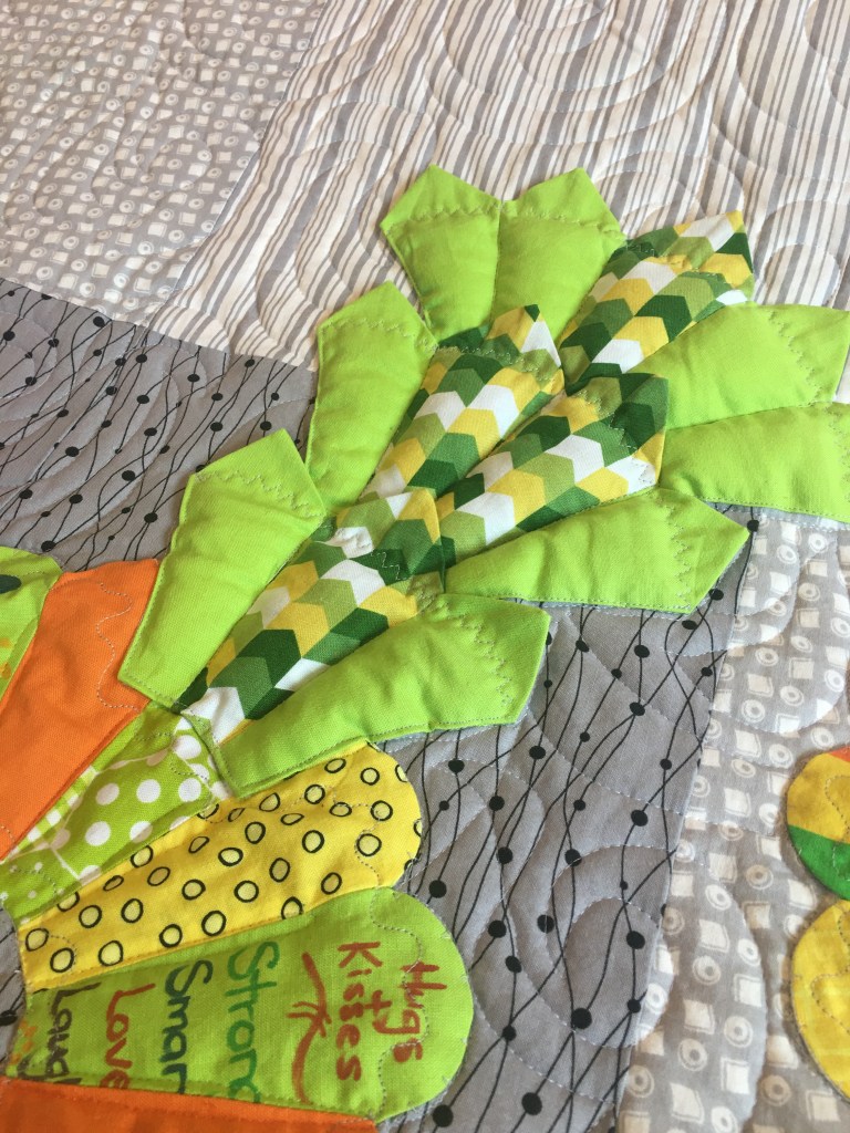 Some of the appliqué was also stuffed also known at trapunto, this did create some challenges in the quilting thankfully my Millie was up to the task.