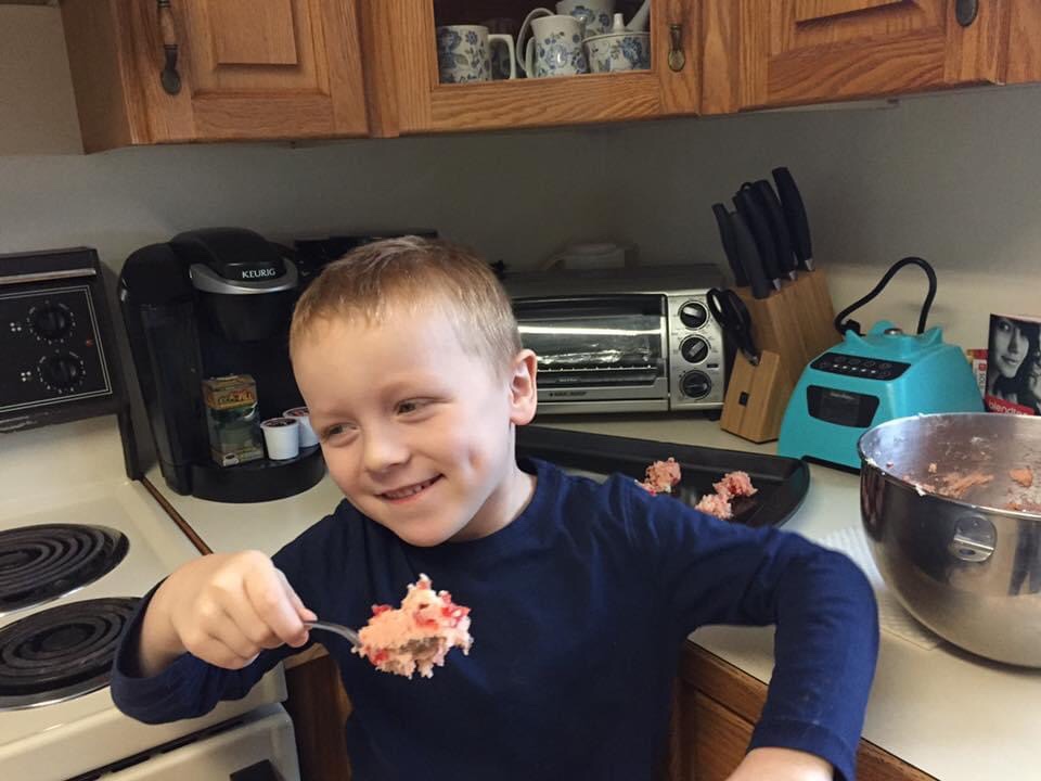 One very special Christmas tradition that Liam and I share is our annual cherry chocolate cookie baking. I don’t do as much baking as I did in past years but these are special!