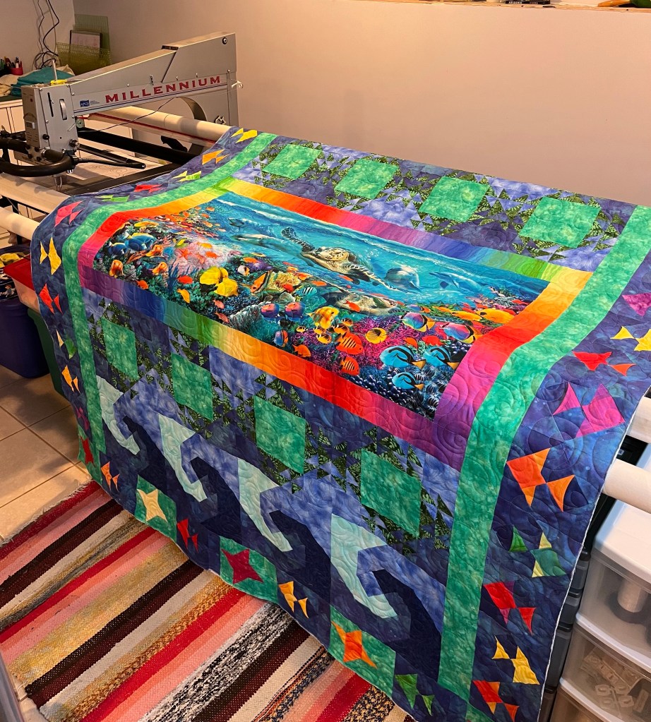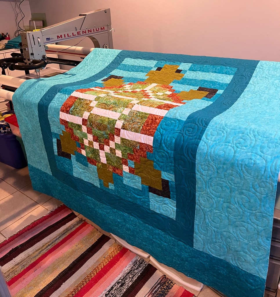 The pantograph Bubbles was chosen by Sam’s Grandma Karen the maker of these super fun quilts.