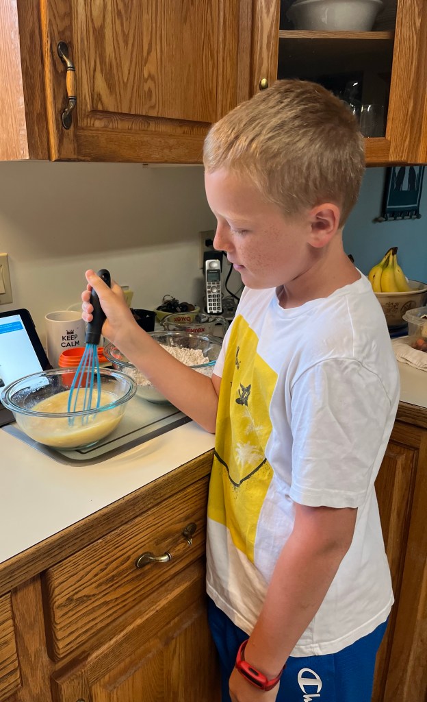 He had a hard time waiting for them to cool… and a hard time not snacking on them during the day. At ten and a half his appetite seems to be constant…and he loves that he is almost as tall as I am.