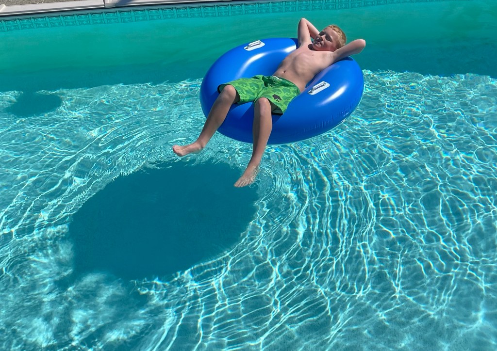 One of the best things in the summer is extra time with Liam…something he and I both agree on. He has spent as much time as he can in the pool and the weather for the most part has worked in his favour. Our pool is solar heated.