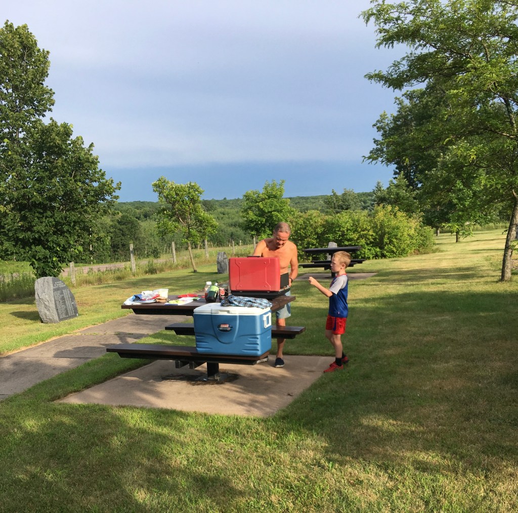 One of the things that Liam often mentioned when he spoke of the trip was how much he liked was that we stop at rest stops to grill when we travel. This picture is from the 2019 trip.