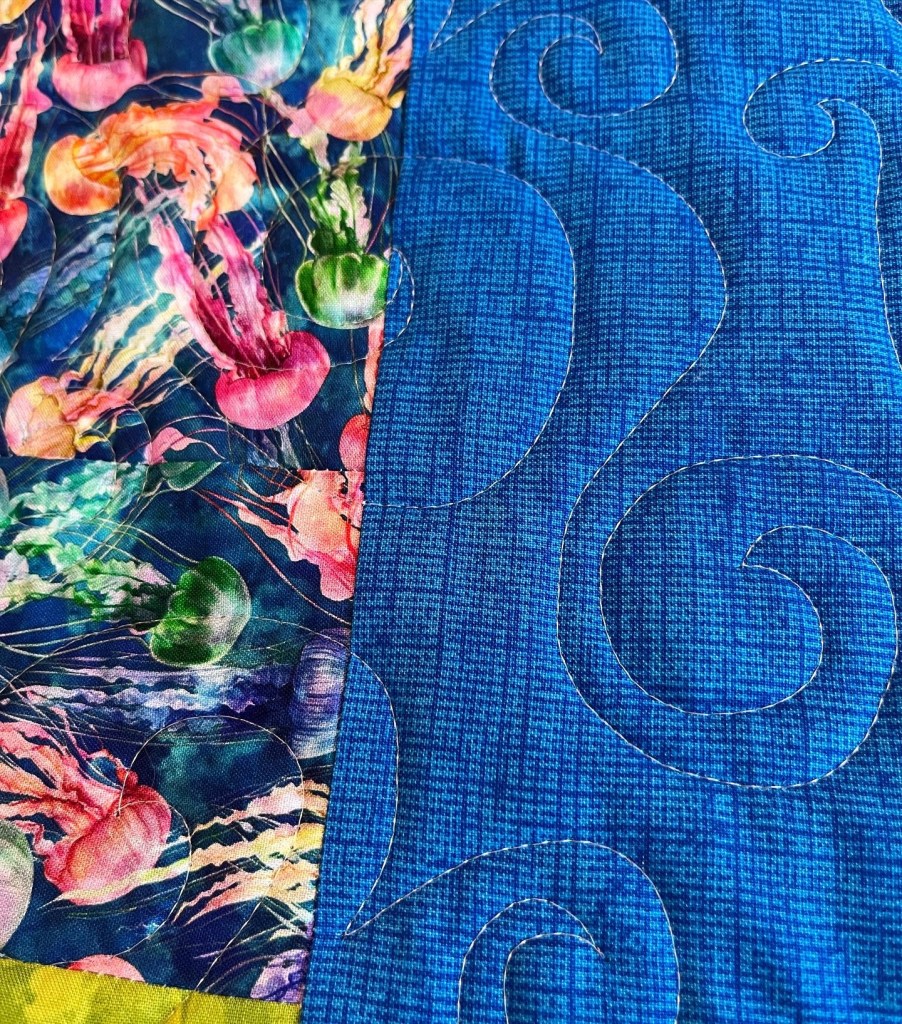 I have recently quilted several quilts that the maker has chosen Cuddle fabric for the backing. This super soft snuggly fabric quilts up beautifully and I happily piece theses and all backings free of charge to for my customers. Why? I first began this service shortly after I began quilting for others as many found it challenging to piece large backings…I continue to do so.