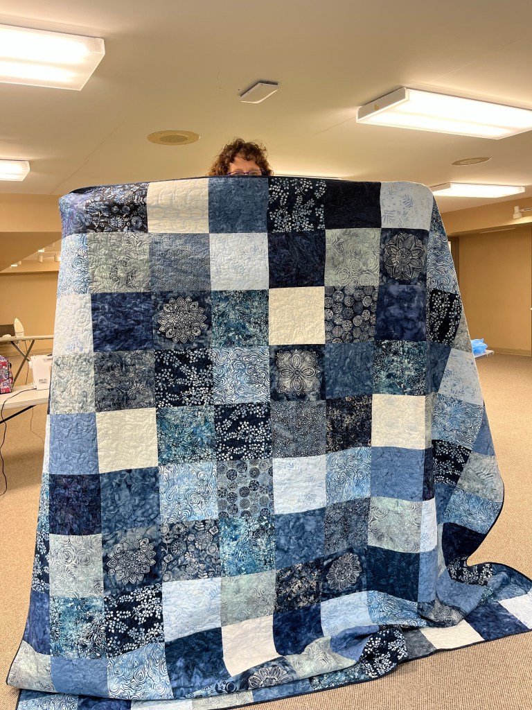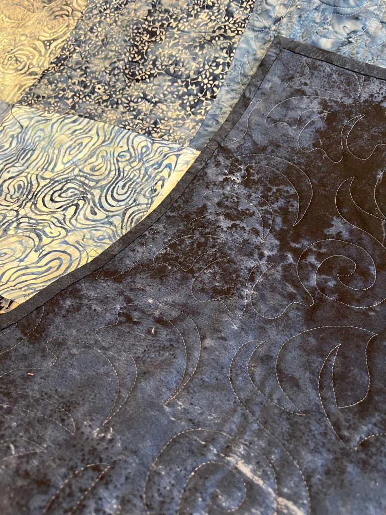 I first met Carol through the quilting group at our re recreation centre and have quilted for her before. I of course loved seeing her project develop while she was piecing her blue quilt! It is gorgeous full of beautiful batiks and did I say blue?