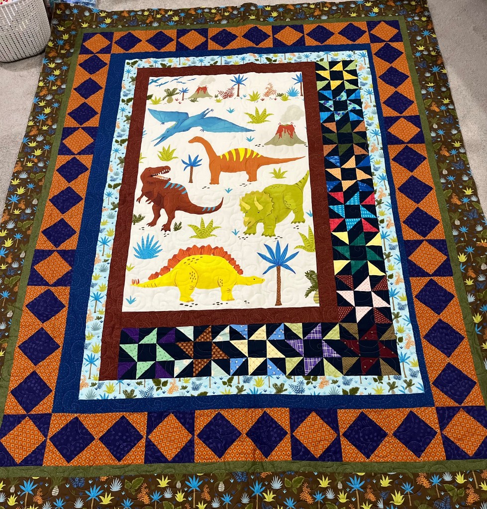 Todays quilt share looks very similar to the one that I shared yesterday. They both began with the same panel, however they were surrounded by different blocks and layouts.