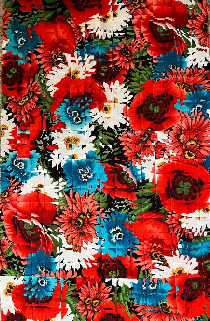 Another treasure discovered was her sample from the Fractures workshop that we took together. Hers of course involved Poppies! She loved red and Poppies. Wouldn’t this piece look perfect on a bag!