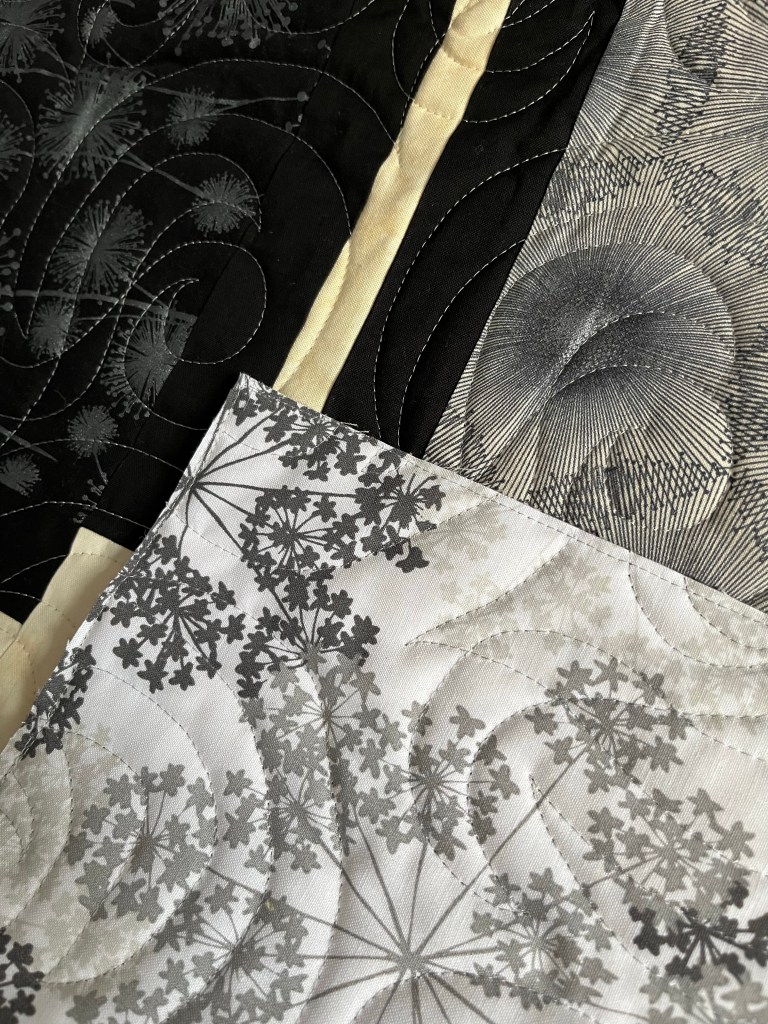 I quilted this quilt with the pantograph Jitterbug which added some fun movement without detracting from the quilt itself.