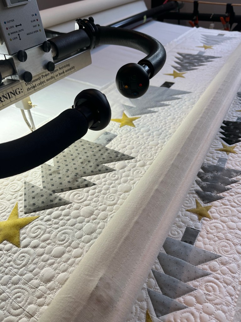 The hours of daylight are lessening with every day, making me increasingly thankful for my fun bright studio and the quilts that I am entrusted with to help complete.