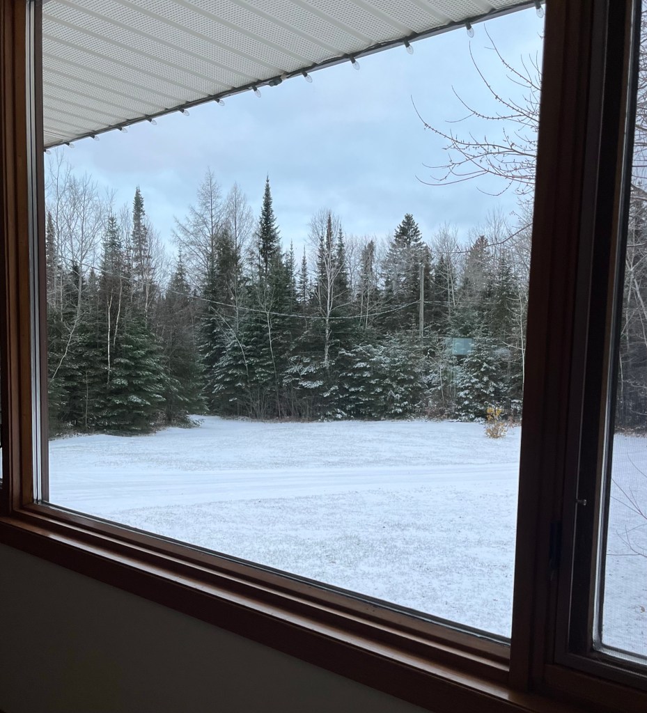 Well we knew it was coming and we did make a point of savouring the last of the above freezing temperatures. This new view from the picture window will most likely be our reality for a while.