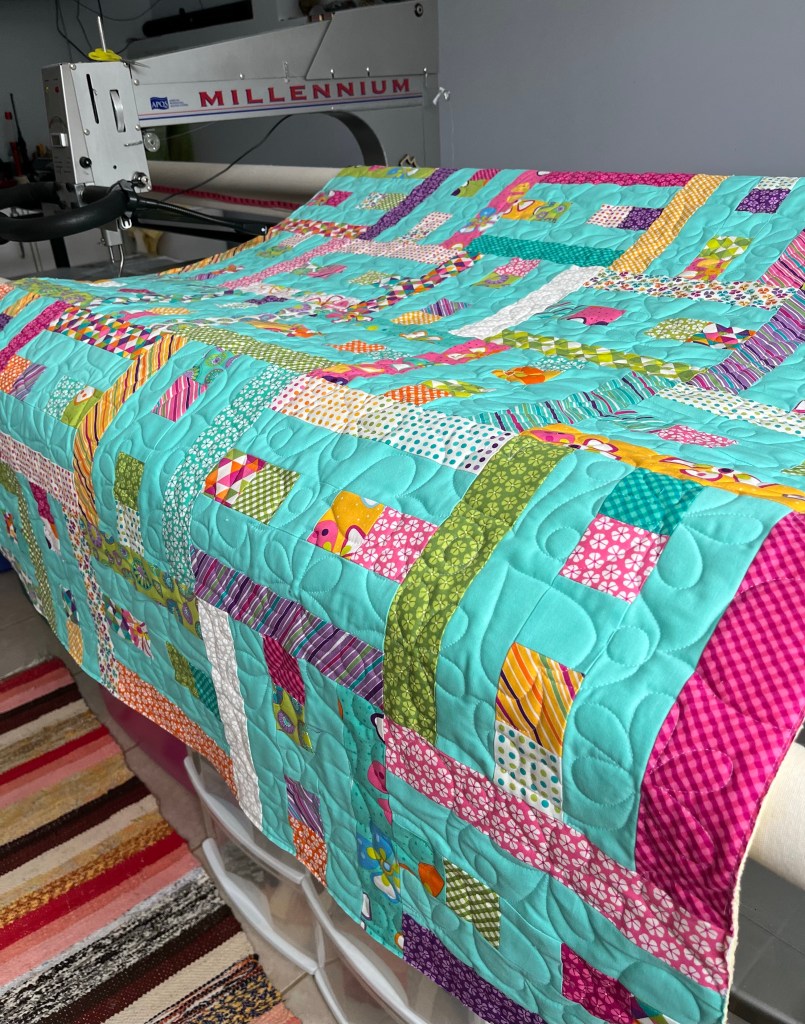 The second quilt was quilted with the pantograph Hearts and Blooms…