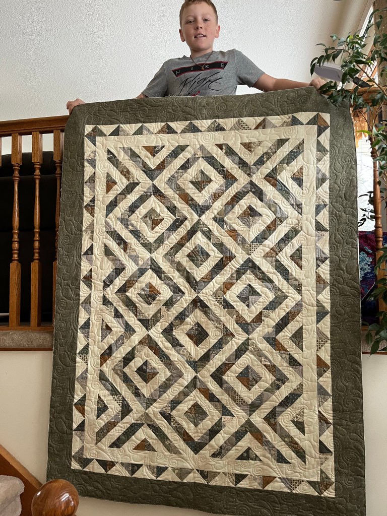 Liam came for a visit and held the quilt for a photo shoot for me!