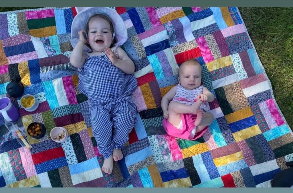 My adorable Granddaughters enjoying a summer day last year! I had forgotten about the quilt that they are on!