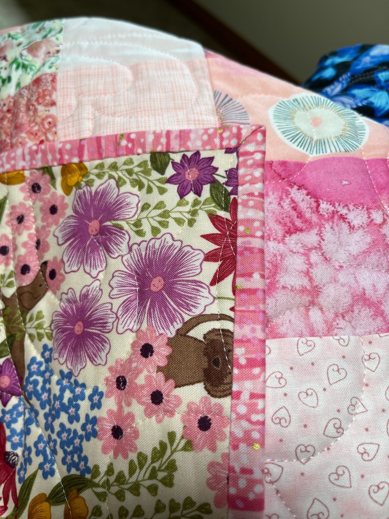The quilt was so much fun to both piece and quilt. I used the pantograph Two of Hearts and of course used Pink 40 wt thread (glide)