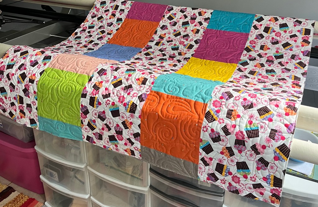 The cupcakes are on the backing but are so adorable I decided to name it the Cupcake Quilt!