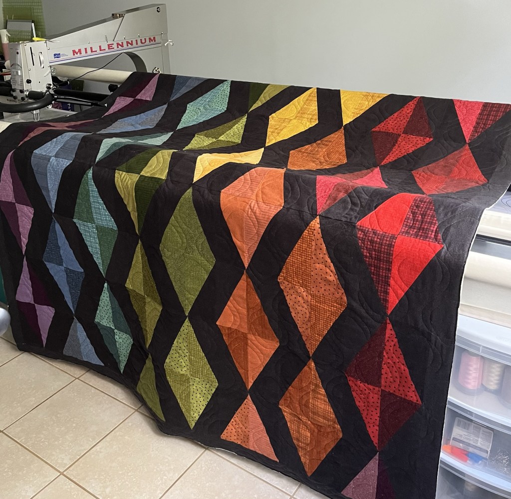 It was quilted with the Pantograph Belly Bop, adding a subtle play on the diamonds in the quilt.