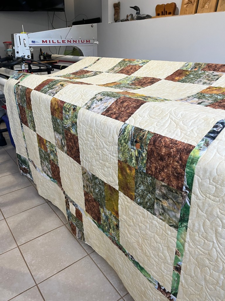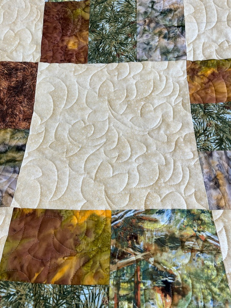 This is the final Christmas customer quilt this year. I chose the pantograph Ground Cover to play on the outdoorsy fabrics theme.