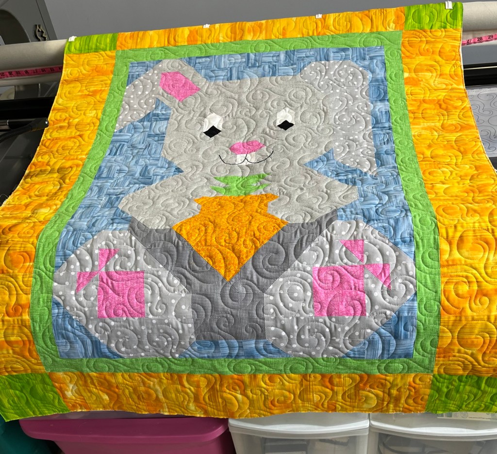 The pattern is from https://www.quiltingdaily.com/product/bunny-patch-quilt-pattern-download/