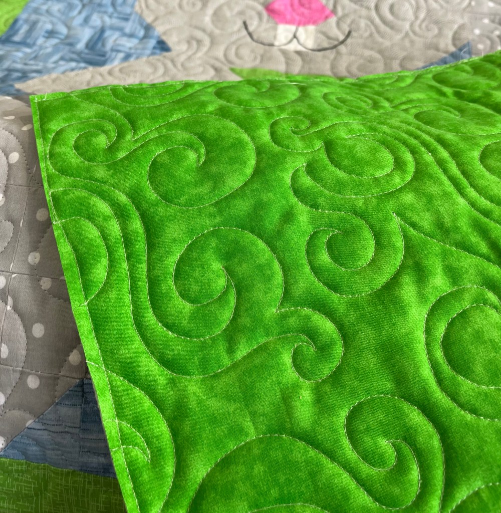 I often choose the pantograph Waterworld for baby quilts as I know that well used ones get a lot of wear and tear and they hold up better and longer with a little more quilting.