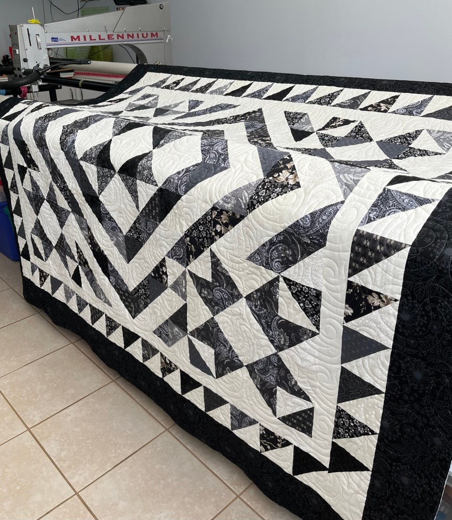 I know how much time goes into making a quilt, so it’s important to me to take the time when quilting for not only myself but for others to do it right. Seaming backs is a complimentary service, including matching the pattern.