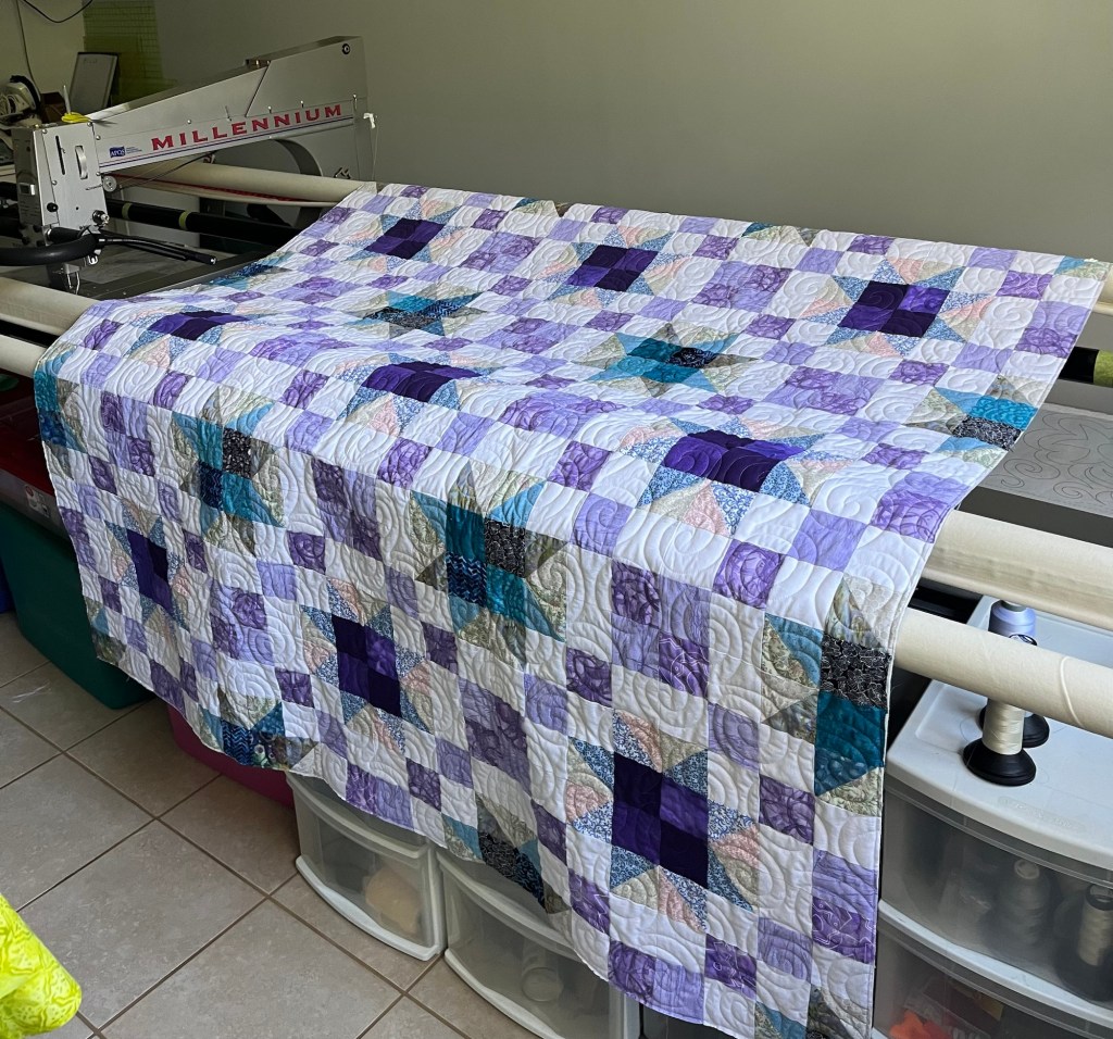 I love how this backing adds a fun touch to this quilt esp with the purple in the steam coordinating with the quilt top.