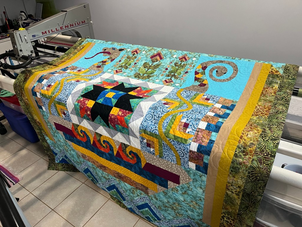 I recently had the pleasure to add my touch to this amazing and very interesting quilt.