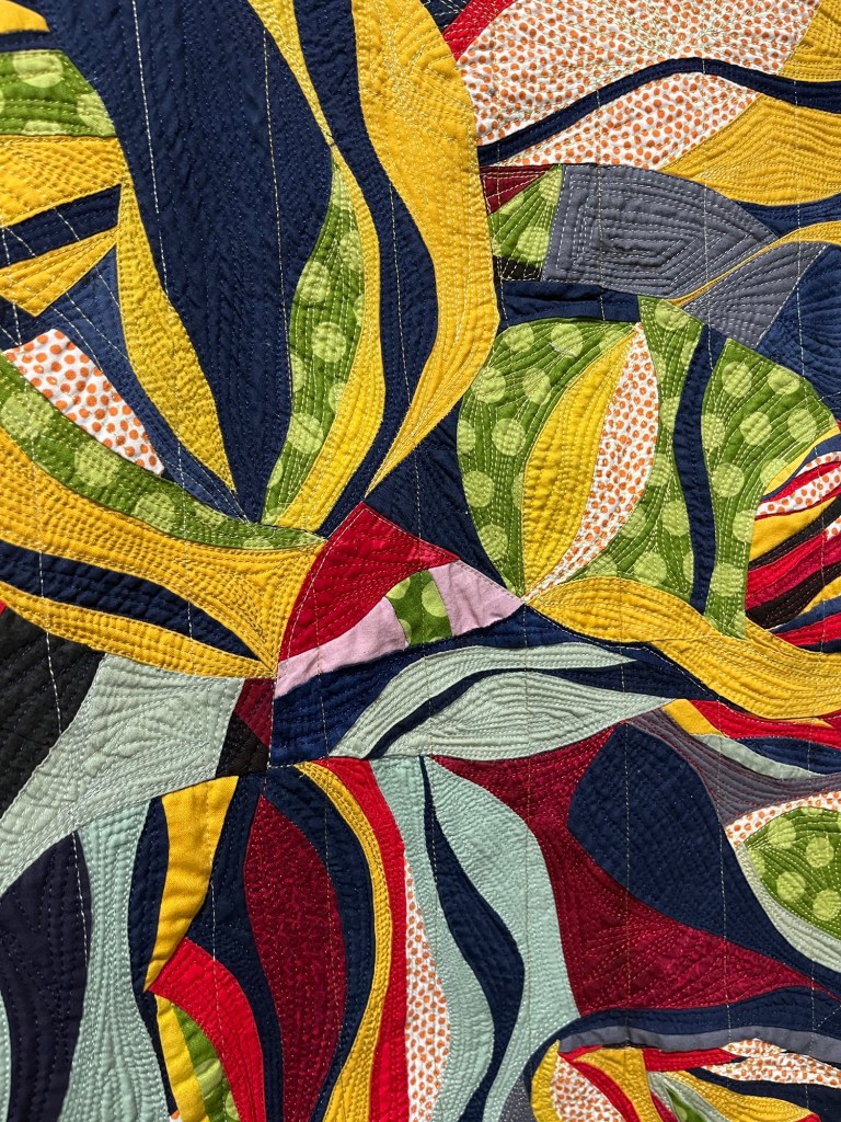 I love her use of colour and her quilting. She quilts on her domestic machine.