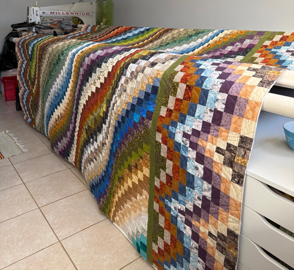 I offer complementary trimming to my customers which is almost always requested. I have the space that many don’t have especially for these really large quilts! I do send all of the trimmed pieces home with the quilts.