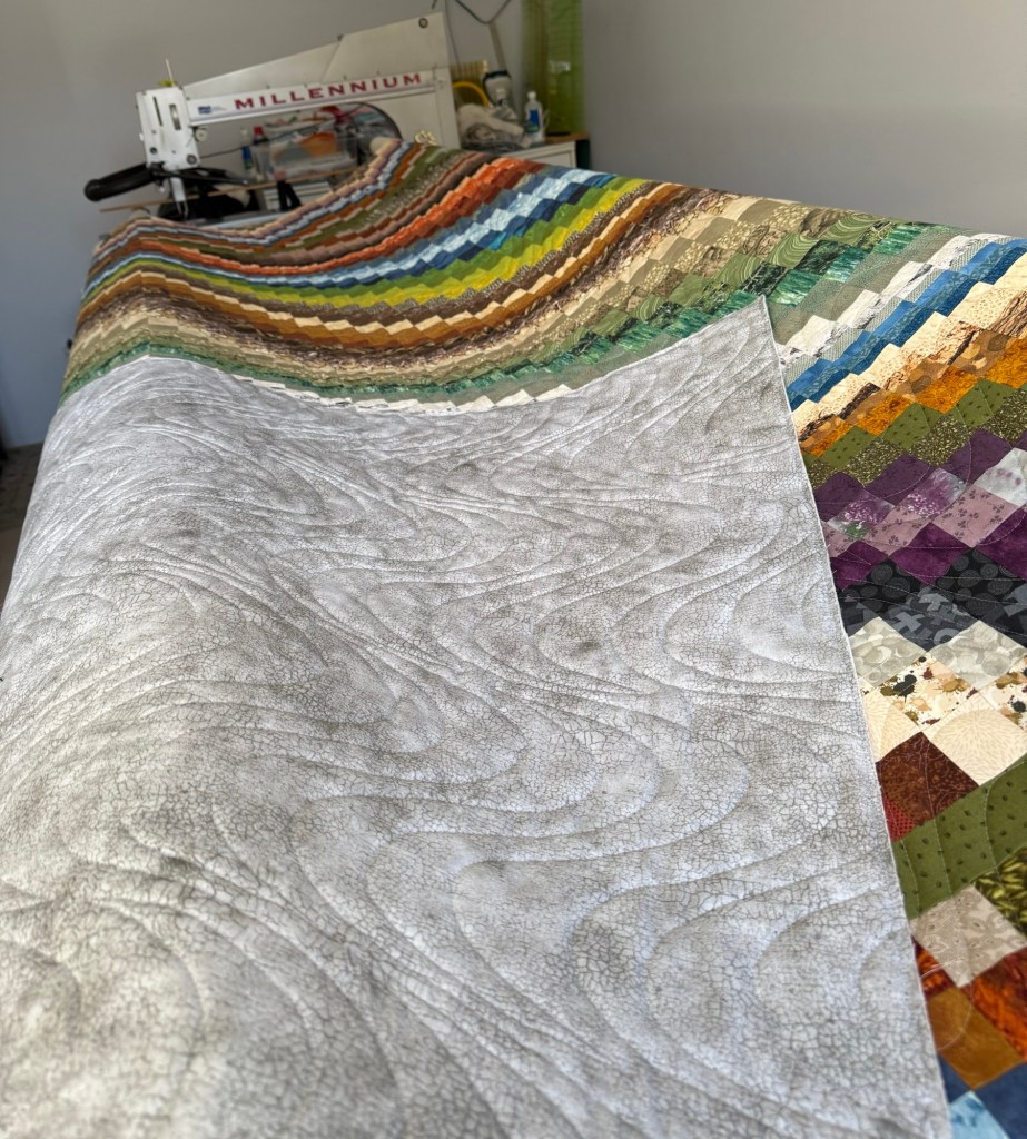 We chose the quilting design New Wave, with its soft flowing curves it really accentuates the movement in her quilt!