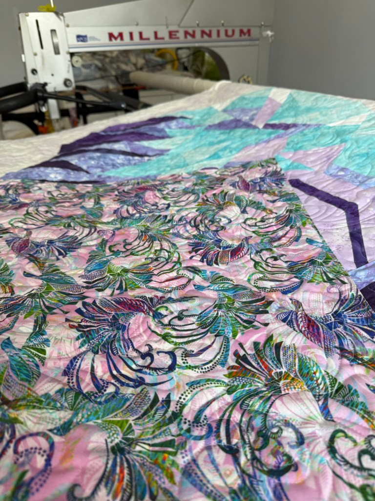 The backing fabric was a fantastic splash of colour complementing the quilt top.
