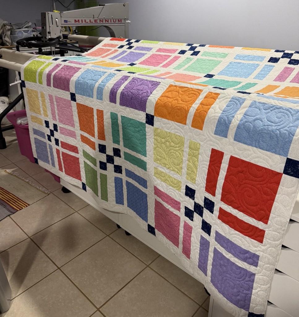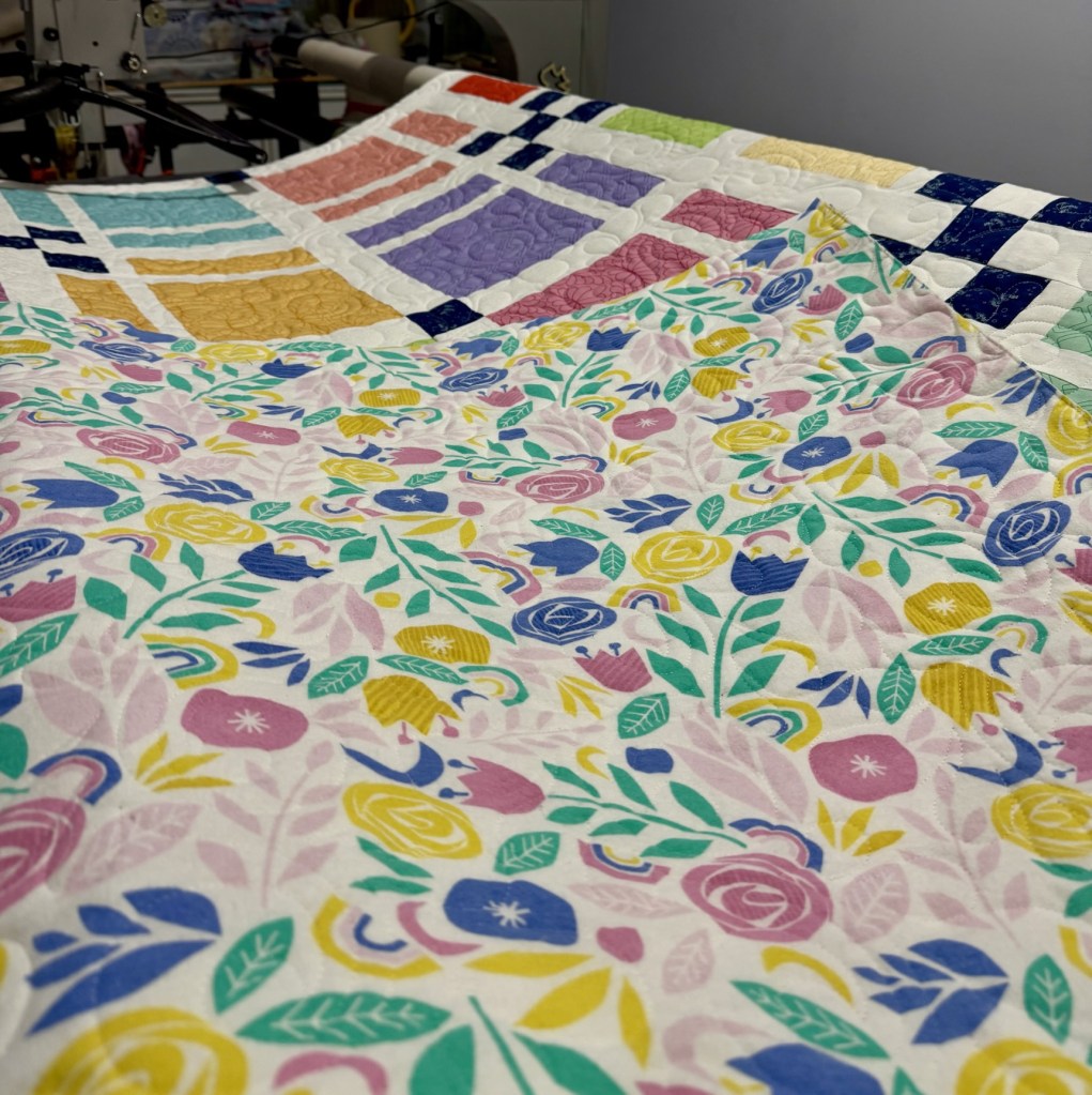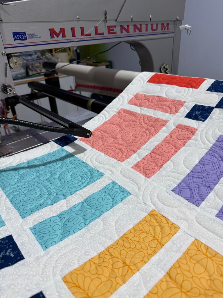 When my customer brought her quilts to me I had recently added some new quilting designs to my collection. We both agreed that Fresco Feathers (one of my new ones) would be a fun addition to this quilt!