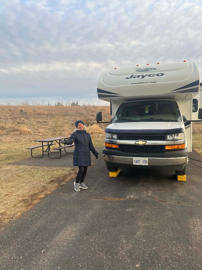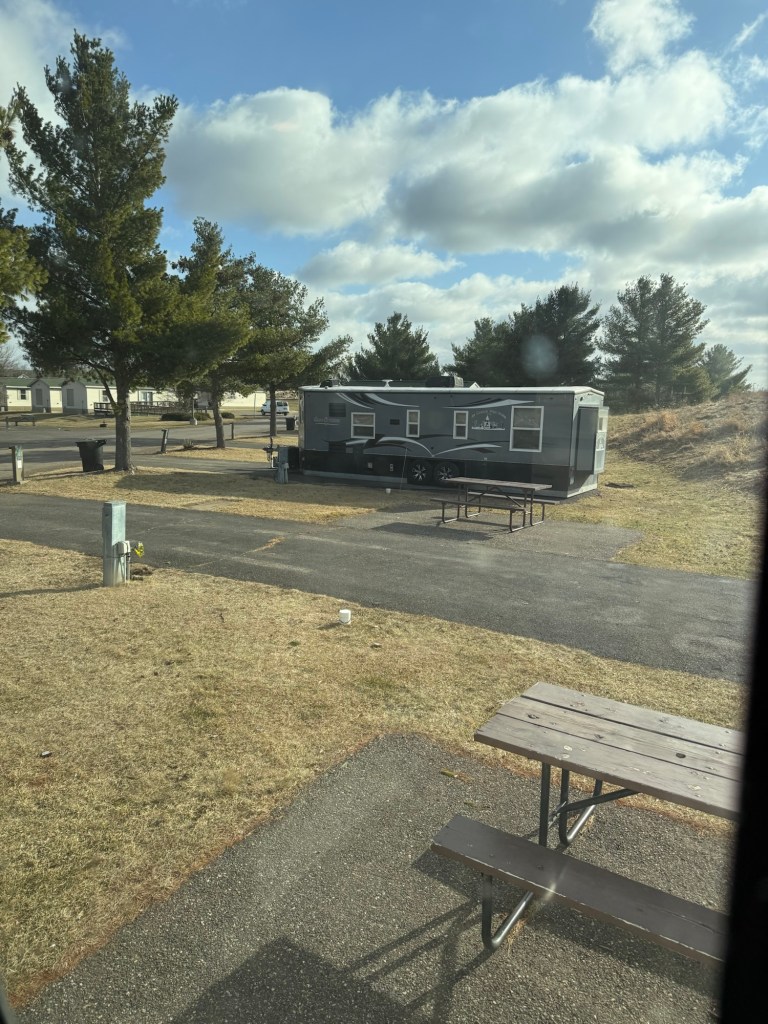 You can tell that we were North again parked beside an ice fishing trailer in Hinkley!!