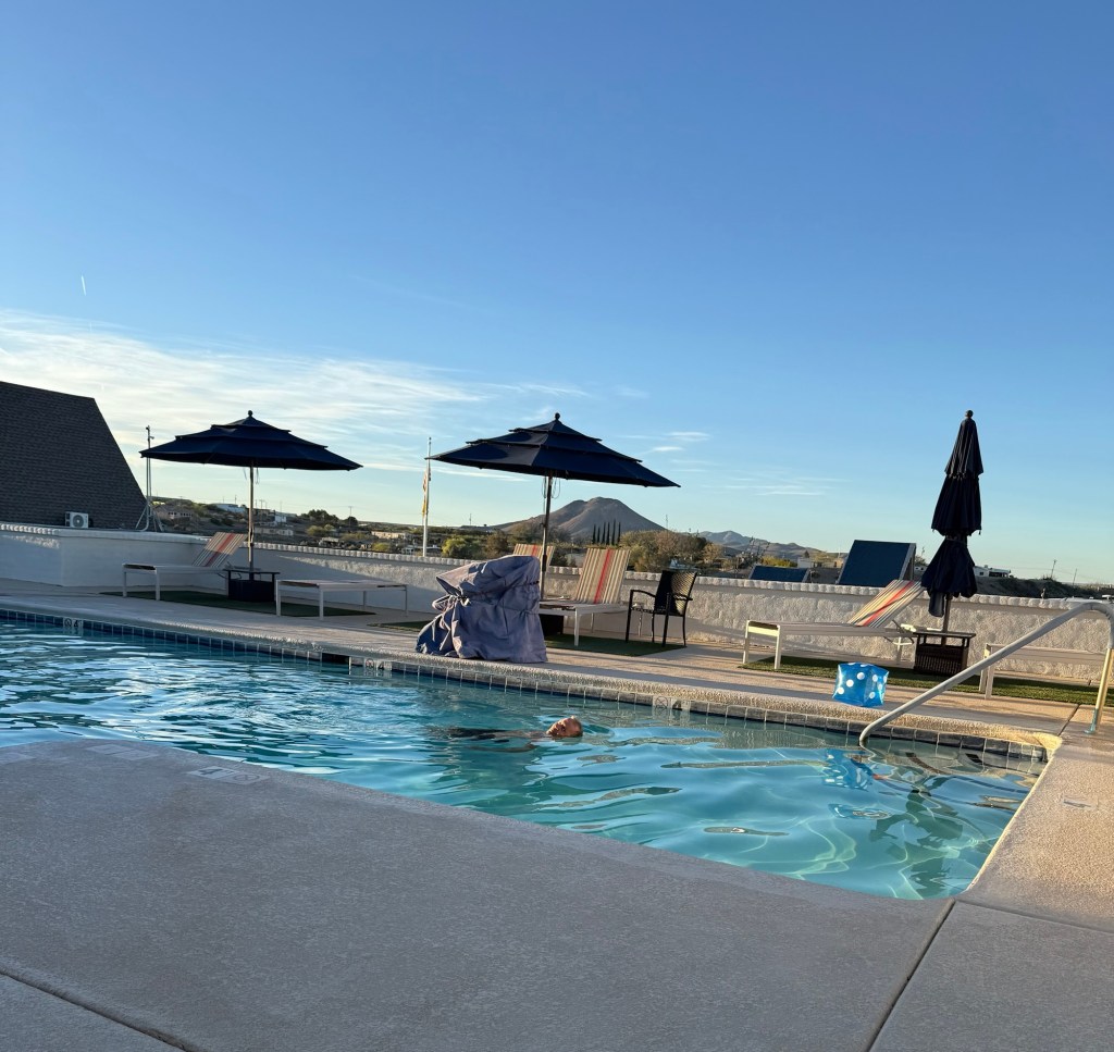 Our first overnight on our way home was in Las Cruces New Mexico…the forecasted temperatures for Tucson were for 40C for right after we left, I happen to enjoy the heat more than Erik. Thankfully it wasn’t as hot in La Cruces but hot enough that we really enjoyed the pool!