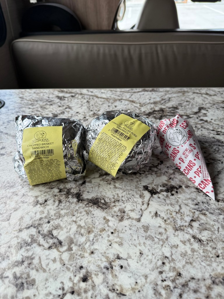 We finally checked out Buc-eyes… https://buc-ees.com in Amarillo Texas. The brisket and pulled pork sandwiches were really tasty! The candied pecans were also a yummy treat!
