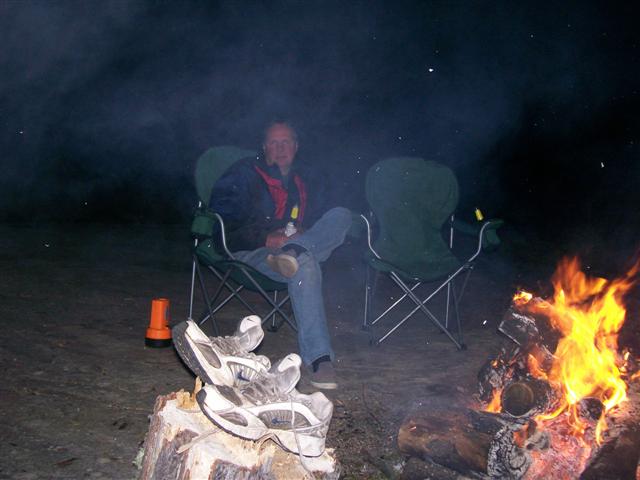 The fish weren’t biting, and it was pretty chilly friday night. (there was even some snow) The bonfires were great and the fishing was so relaxing….the scenery spectacular etc… 🙂