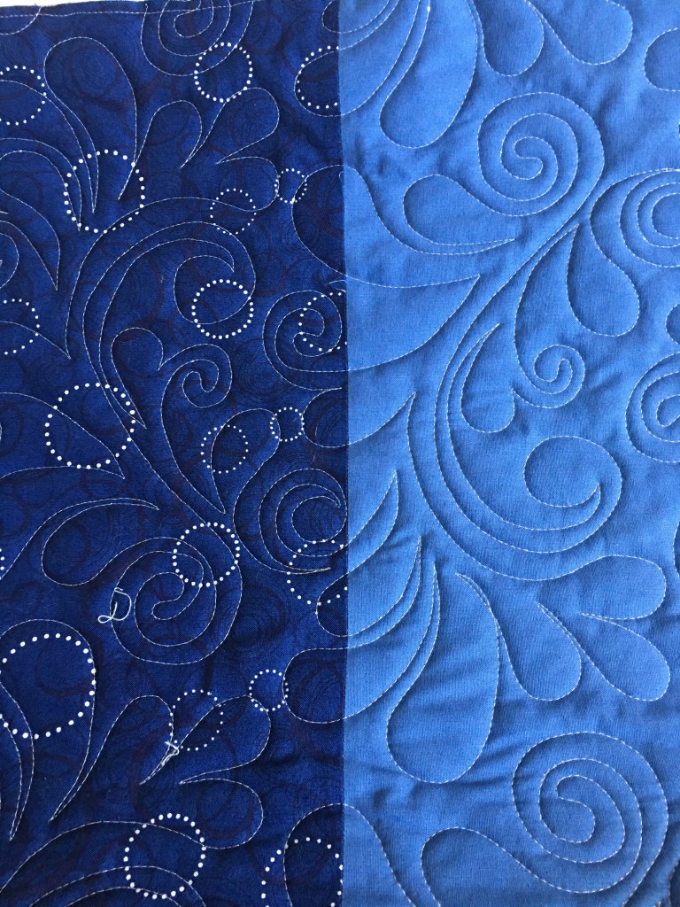 I chose the pantograph Bayside and loaded the quilt sideways in order to have the design flow in the right direction. I really love the result.