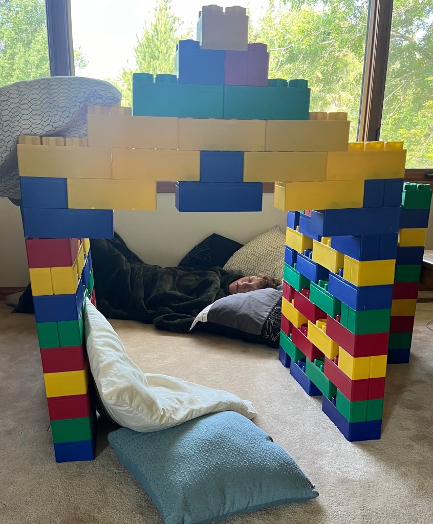 Liam still enjoys making a fort and having a nap in it!