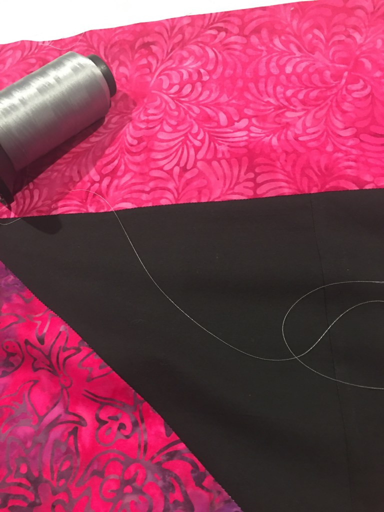 I have often chosen a variegated thread on quilts with black backgrounds however auditioned this Glide Sterling and chose it.