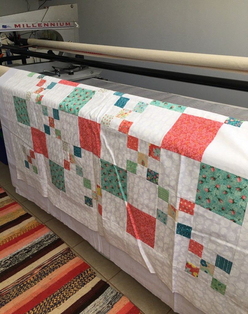 This quilt was pressed and loaded onto the longarm last night and will be quilted today. I always go over my customers quilts, press them and make sure everything is good to go.